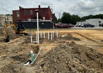 During the summer of 2025, Pennant Construction Management was selected to turn a vacant lot into a public park for the City of Rome. The PCM team hit the ground running by immediately beginning grading and erosion control measures. Once site work was complete, a concrete drive and building slab were poured to allow operations for the building to occur.